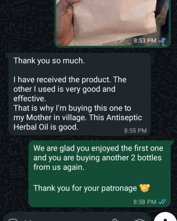 I had severe Itchy foot that is always scratching me. it even spread to my hand and skin because I always scratched it, I tried many drugs and creams but nothing worked, this Herbal Oil is so good. it smells very nice. I recommend it to anyone that is having issues on foot.